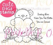 Today I'm showcasing a cute card created by one of our past DT designers, Cheryl Gorka. She used the printable digital stamp set: Sending You Luv which includes 4 separate digi stamps. This set is perfect for get well cards, thinking of you, Valentine's Day or simply to send love to a special one.